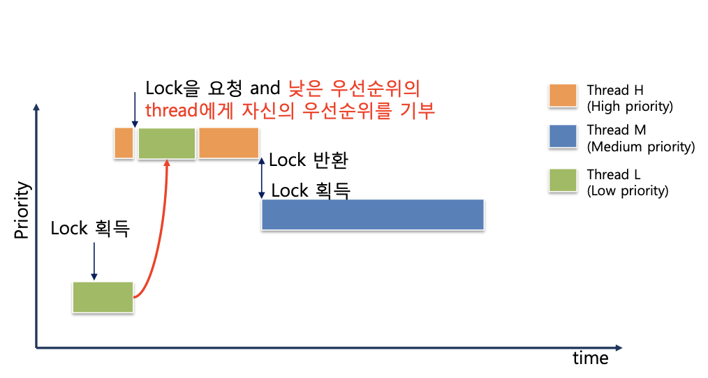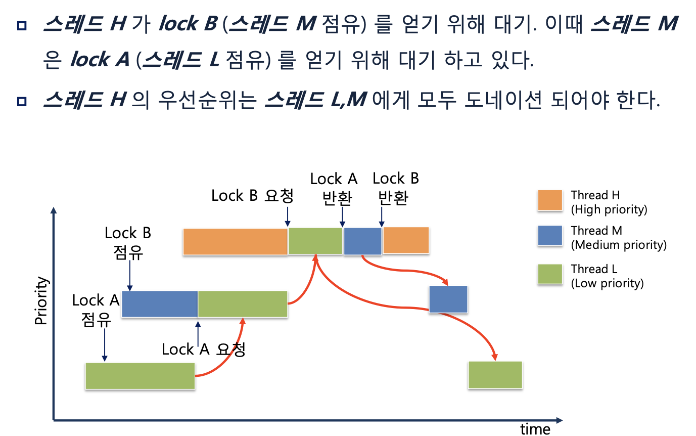 1. Priority donation : 우선순위가 높은 쓰레드가 우선순위가 낮은 쓰레드를 기다리는 현상