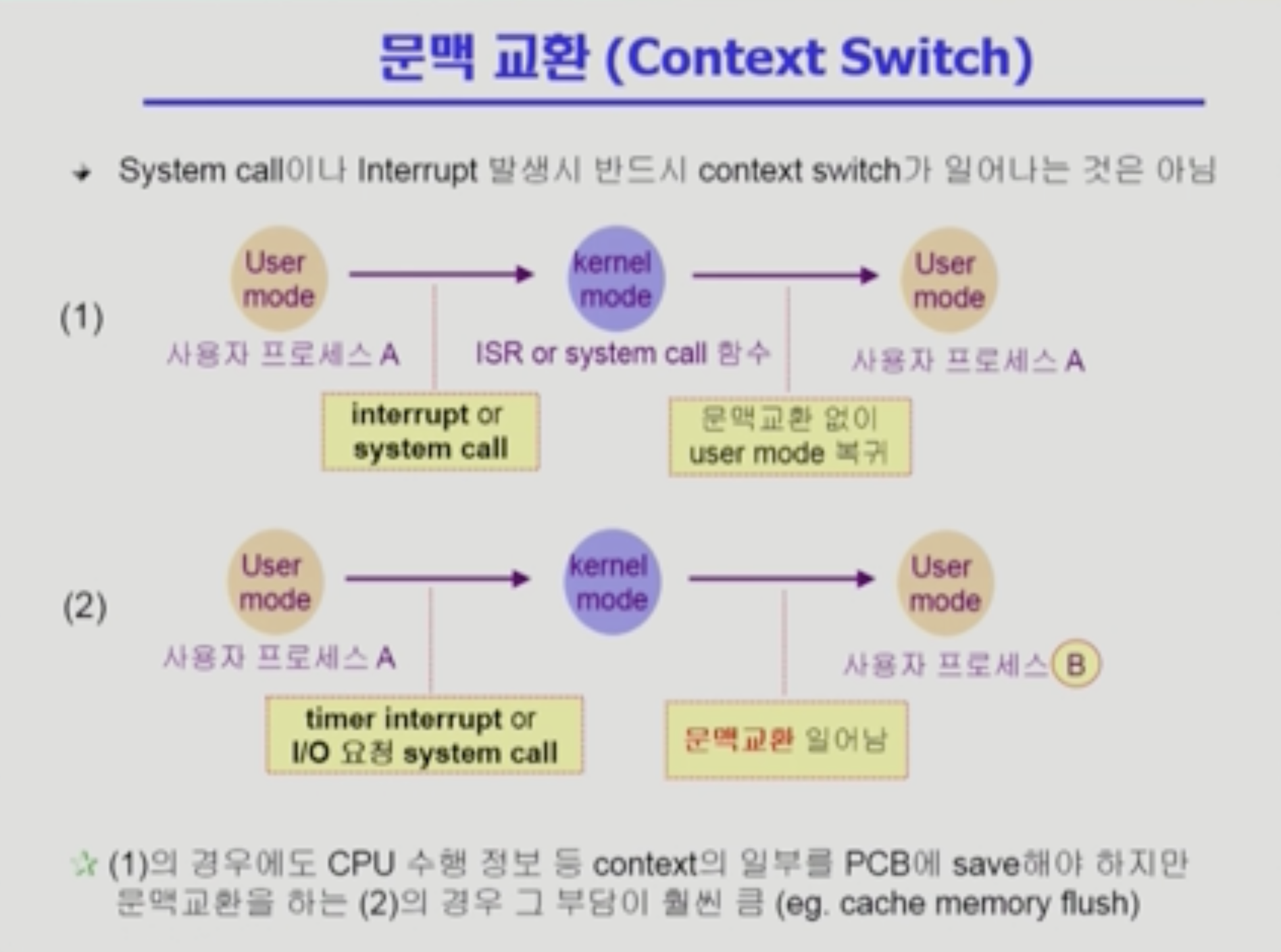 - CPU를 내어주는 프로세스의 상태를 그 프로세스의 PCB에 저장