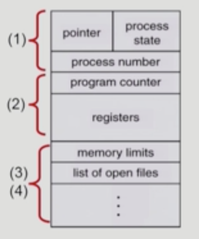 - CPU 수행 상태를 나타내는 하드웨어 문맥 (Program Counter, 각종 register)