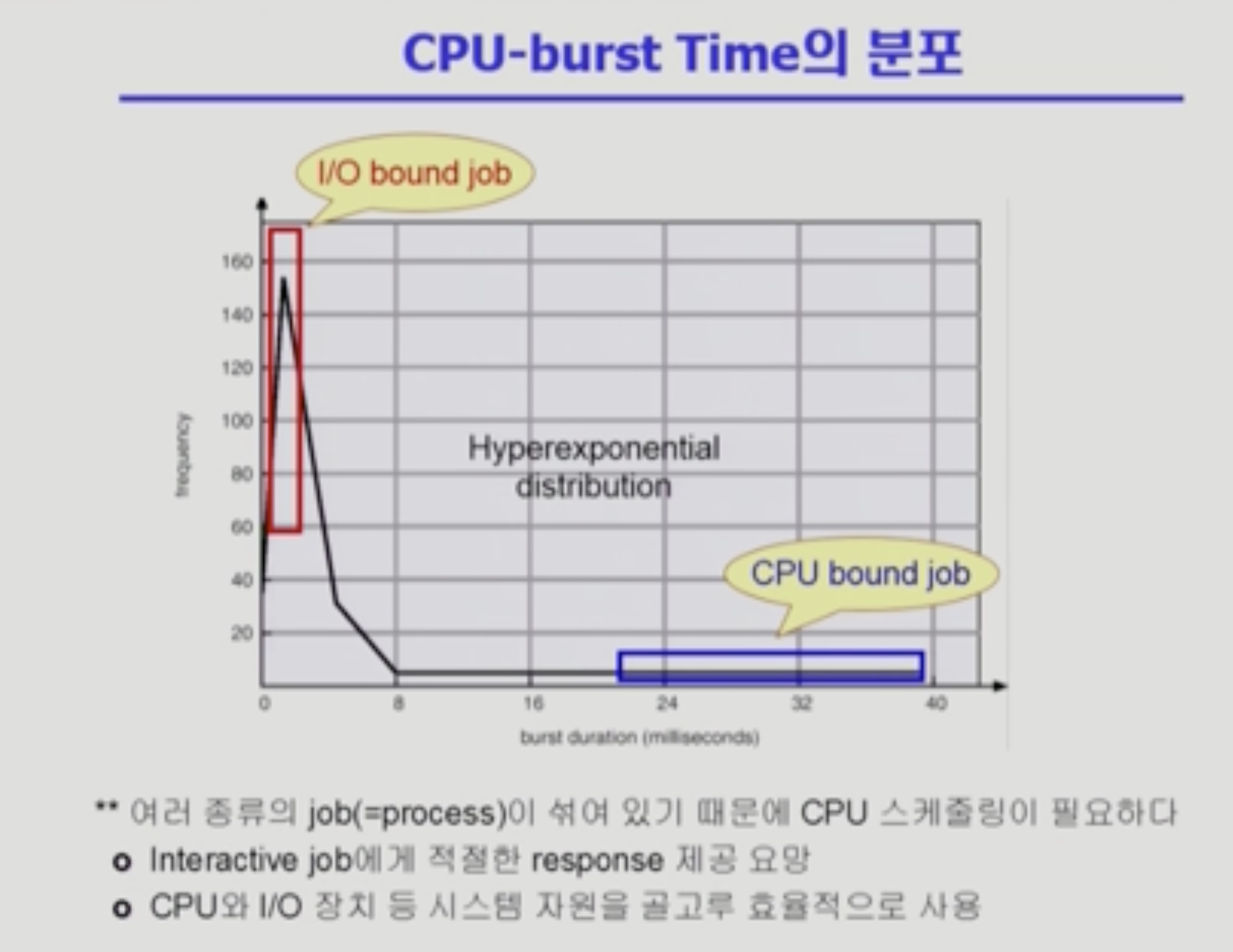 - CPU를 잡고 계산하는 시간보다 I/O에 많은 시간이 필요한 job